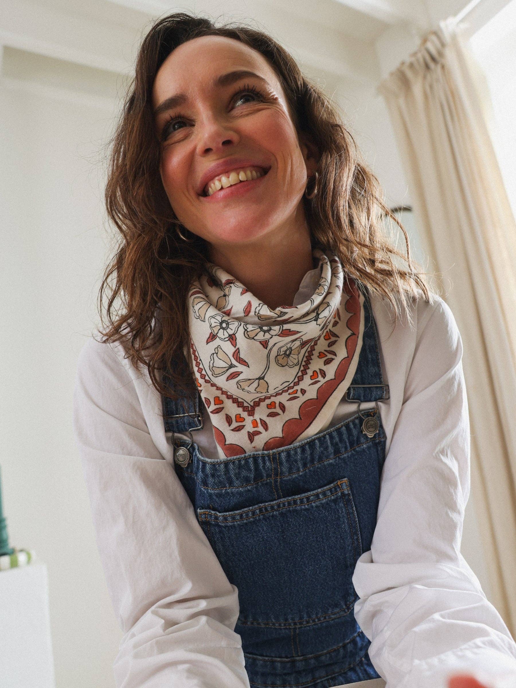 Ce foulard est l’accessoire parfait pour ajouter une touche de style tout en douceur. Léger et pratique, il se porte autour du cou (de vos petits bouts aussi), dans les cheveux ou même accroché à un petit sac. Les motifs sont appliqués à la main, ce qui rend chaque pièce unique. De petites variations de couleurs peuvent apparaître, et c’est ce qui fait tout leur charme.