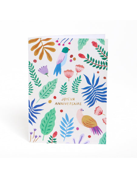 Carte double - Des oiseaux et feuillages colorés pour fêter un anniversaire Pour souhaiter un joyeux anniversaire, accompagner un cadeau,... En savoir plus